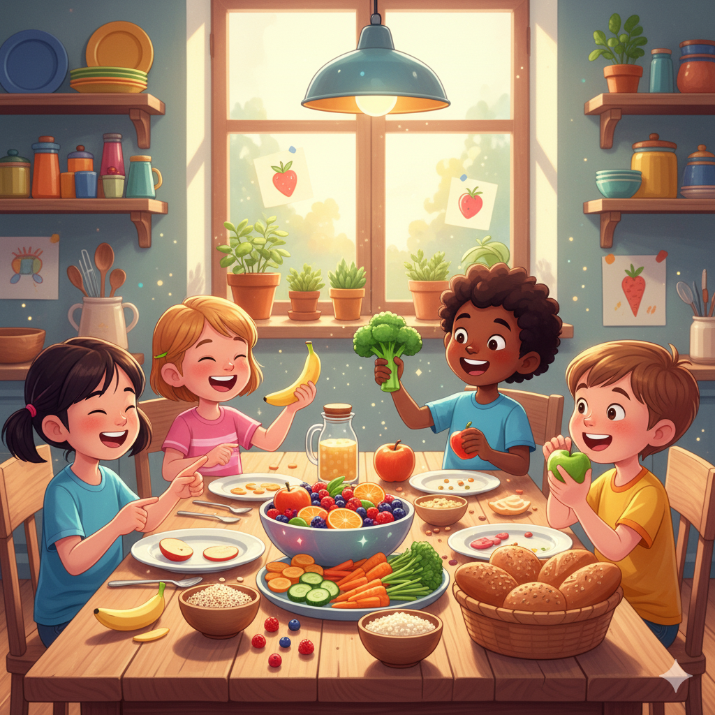 “Uşaqlar üçün sağlam qidalanma üzrə valideynlərə praktiki tövsiyələr, balanslı yeməklər və gündəlik vərdişlər.”