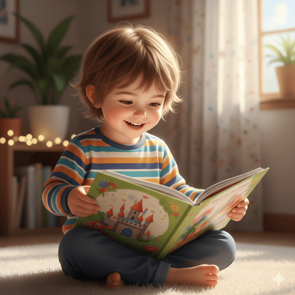 Uşaqlar hekayələr uyduraraq və ya kitab oxuyaraq dil bacarıqlarını inkişaf etdirir və təxəyyüllərini genişləndirir. -